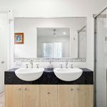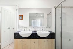 Main bathroom with separate toilet and two vanities