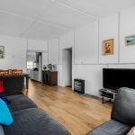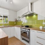 The lino in the kitchen and dining has been lifted to reveal beautiful timber floors and the kitchen is light and bright and has a new island bench.