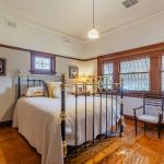 As you enter the home 10 foot ceilings & timber floorboards greet you. A standout of the home is to your left, the living room. A large space with wainscotting, panelled beam ceilings, dark stained timber work, slow combustion wood heater, leadlight doors that open to the verandah – it is truly a beautiful space. Everywhere you look, you will be amazed by the detail and craftsmanship that has gone into this home.