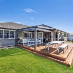 Inside, the open-plan layout offers a fresh and welcoming vibe with beautiful light coloured flooring, a feature wall in the lounge, and a heat pump for year-round comfort. The living and dining areas are family-friendly and beautifully connected to the outdoors, flowing effortlessly to a sunny patio – perfect for your BBQ and relaxing in the sun.