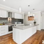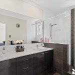 At the heart of the home lies a sleek and functional kitchen, finished with stone benchtops, an island bar, a 900mm oven, and electric cooktop – a space designed for entertaining as much as it is for everyday living. The open-plan dining and living area flows seamlessly to a stunning decked alfresco, complete with privacy screens, while a second decked entertaining area at the front provides an additional outdoor retreat.