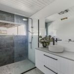 A study nook in the hallway is a clever and useful addition, while the walk-through laundry offers excellent storage. From here, stairs and a ramp lead to the large enclosed single carport and onto the lower level where you’ll find a single garage, workshop, storage room, cellar and rumpus room, along with additional under-house storage.